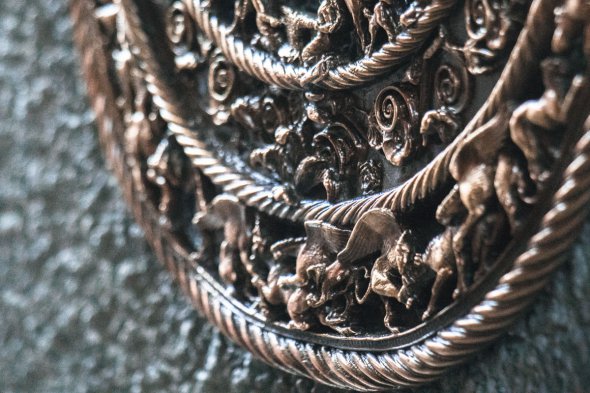 За словами Юлії, ідея створення цієї статуетки виникла після візиту автора до Музею історичних коштовностей України. Саме там зберігається оригінальна скіфська пектораль. Статуетку створили за образом оригінальної прикраси, яка важить 1 кг 150 г. Пам’ятник вийшов трохи важчим через кріплення до стіни.